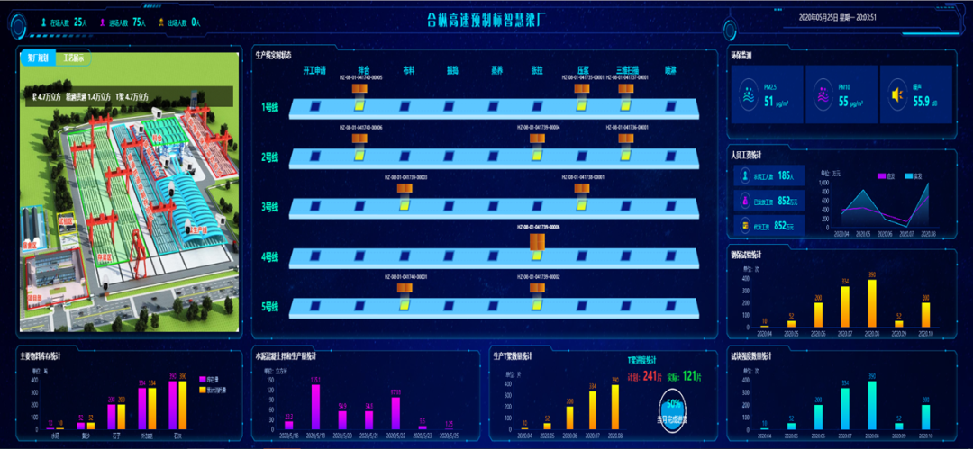 施工阶段运用了“1+1+N”信息系统架构,第一个“1”为数字孪生平台,第二个“1”是数据中心,“N”指多个业务子系统,现场的数据借助物联网设备实时采集 ,涵盖混凝土温度、振捣频率、预制件位置等信息 ,全都上传至数据中心 ,管理人员能够随时查看施工进度以及质量状况。